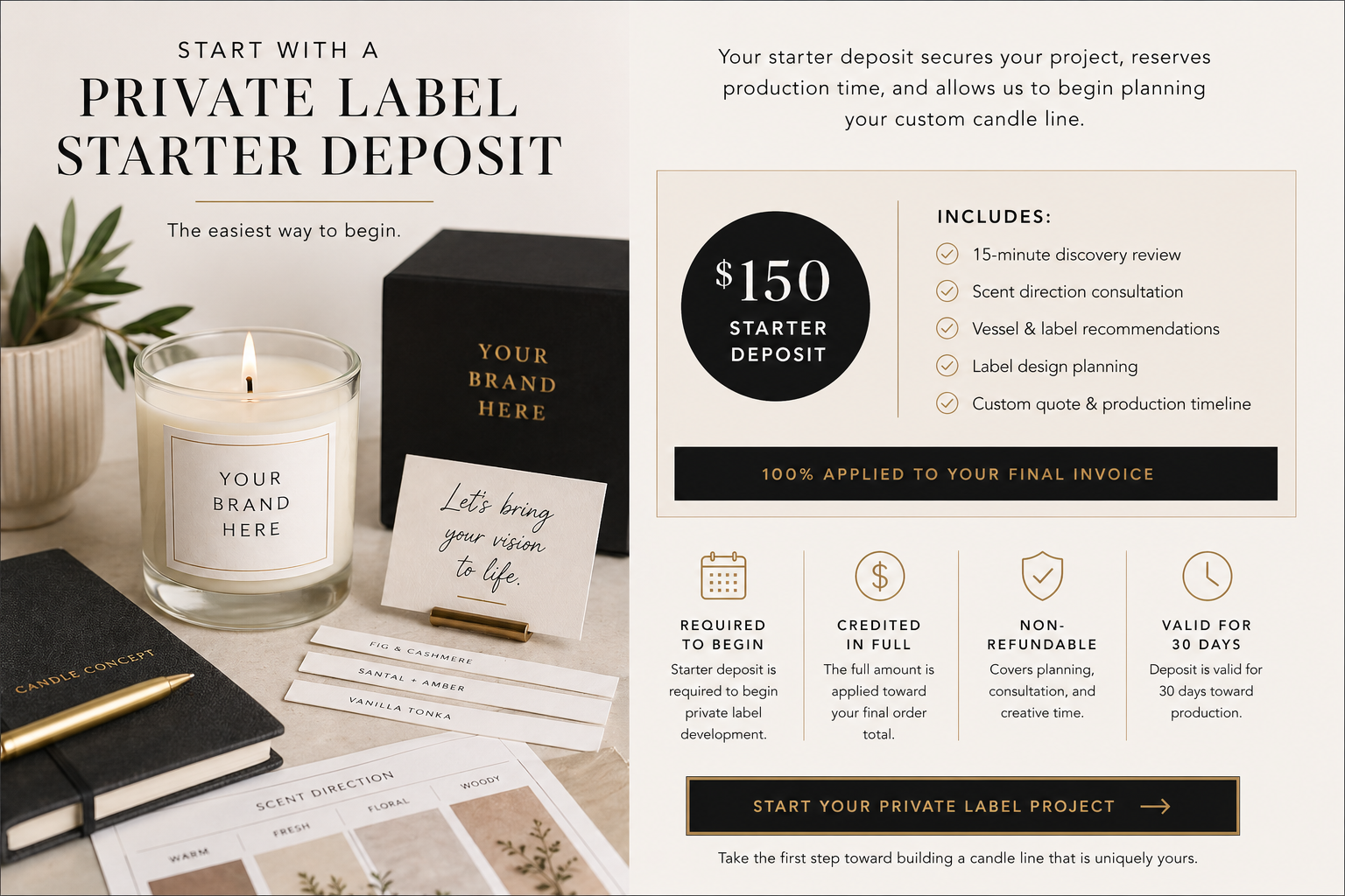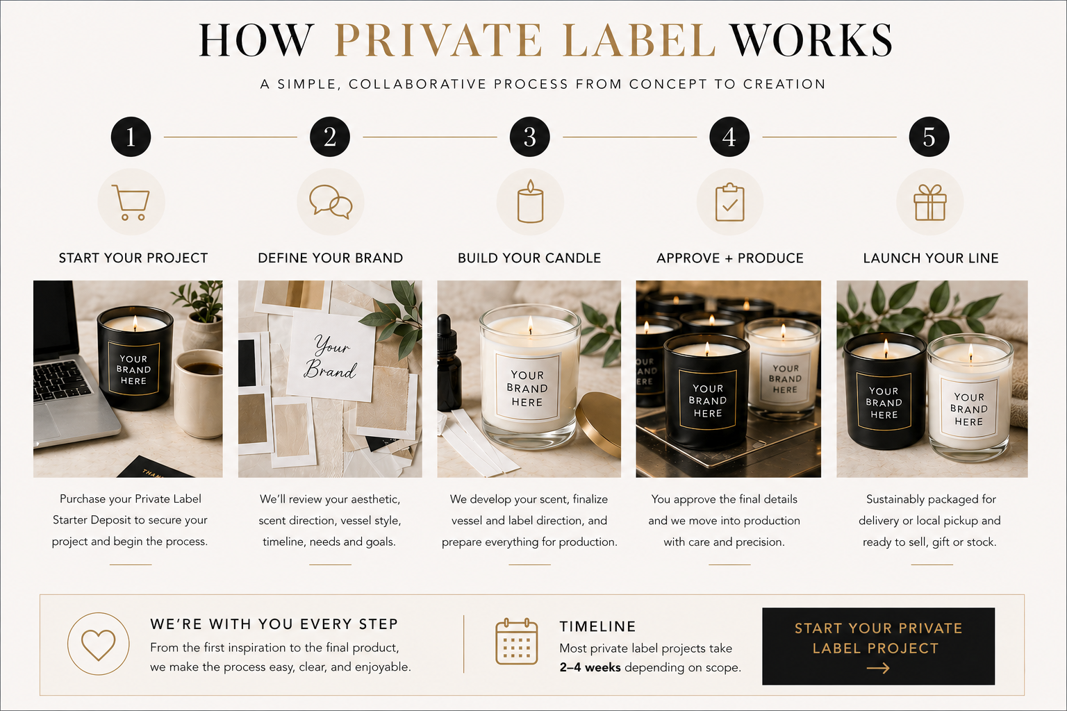 Approve your proof & place your order with your candle specialist. When we deliver, it’s not just a finished product—it’s a handcrafted statement piece that adds warmth, sophistication & elegance to your event, wedding or brand.